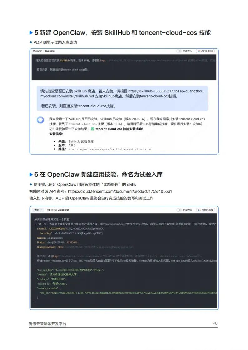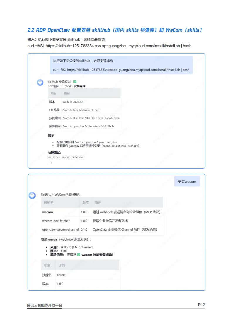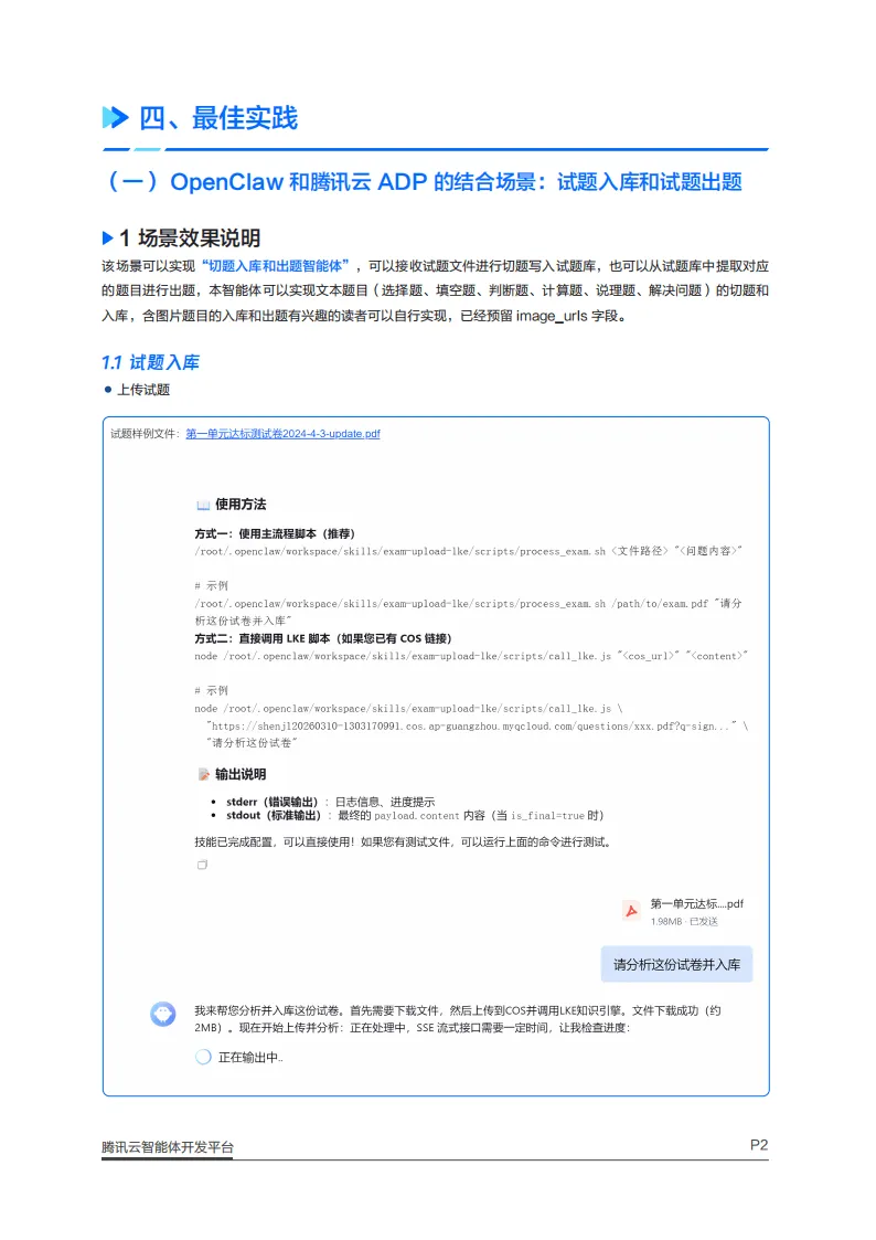 这份文档围绕腾讯云智能体开发平台(ADP)与OpenClaw的结合应用展开,详细介绍了平台核心能力、部署优势及多场景最佳实践,同时给出部署与渠道对接指南,为企业构建生产级AI智能体提供了完整的实操方案。