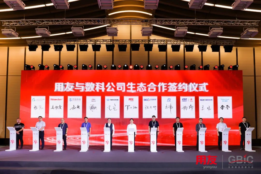 为提升数科公司IT运营能力,并共同推动央国企,以及行业数智化转型。近日,在2023全球商业创新大会上,用友与10家数科公司正式签约,包括:北京微乘科技有限公司 (海航集团数科公司)、北京北控数字科技有限公司、苏州澳洋数字技术有限公司、重庆交通开投科技发展有限公司、贵州振华电子信息产业技术研究有限公司、中科创达股份有限公司、无锡混沌能源技术有限公司、平行数字科技(江苏)有限公司、航天江南集团有限公司(科工十院)、 美云智数科技有限公司。用友将与数科伙伴资源共享、联合共创,通过平台、技术、数据、业务、商业创新等多渠道的共同探索,在多行业领域,强强联手,书写行业增长新篇。