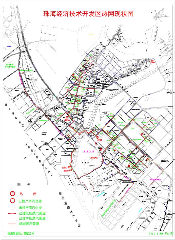 在建工程:在石化区新源热力围绕新用户需求,持续完善、优化管网布局;在精细化工区为保证重点用户的用汽安全,新源热力增设管道一条,做到一用一备,提升供汽安全水平;在装备制造区,新源热力提前规划布局,为潜在用户做好供热配套工作。