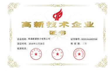2018.11 评为广东省首批高新技术热力企业