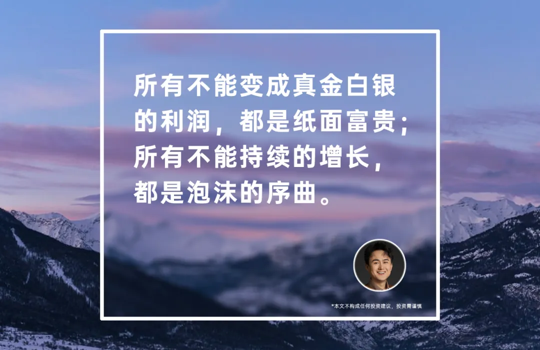 记住:所有不能变成真金白银的利润,都是纸面富贵;所有不能持续的增长,都是泡沫的序曲。
