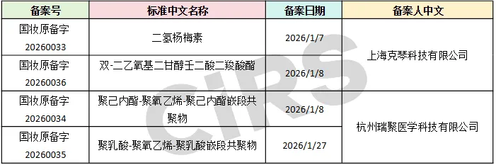 通过查询国家药品监督管理局,2026年2月共有17款化妆品新原料完成备案。目前相关技术要求均尚未披露,且尚未进入监测期。具体信息详见下表。