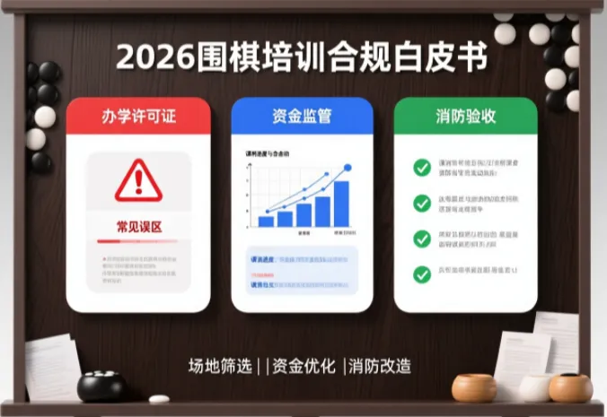这不是个例。2026年,围棋作为素质教育热门赛道,早已告别“野蛮生长”,“持证合规”成了机构活下去的基本盘。“双减”后非学科培训监管趋严,今天不谈教学、不聊招生,只说一件关乎棋院生死的事:2026年,围棋机构如何避开合规大坑,安稳经营?