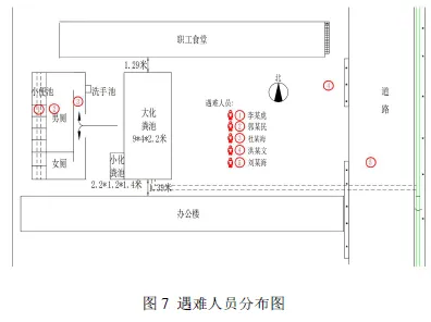 6时16分,办公区与生产区的分界处雨水总渠有酸雾产生,6时27分,办公楼东侧雨水总渠有酸雾产生;随后溢流硫酸进入办公区化粪池,与化粪池内集聚的硫铁矿等含硫沉积物剧烈反应,产生以硫化氢为主的混合有毒有害气体,导致如厕人员李某虎中毒倒地,在救援过程中郭某民、杜某海、洪某文、刘某海、张某之、朱某锁、程某生先后中毒,事故共造成5人死亡、3人受伤。