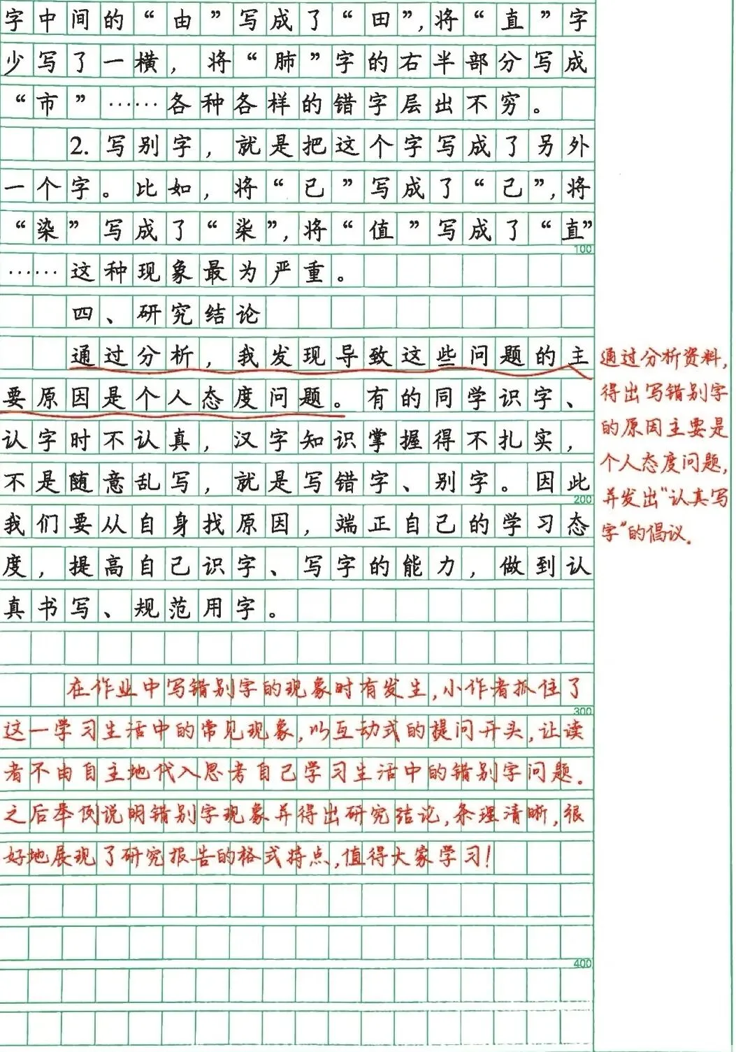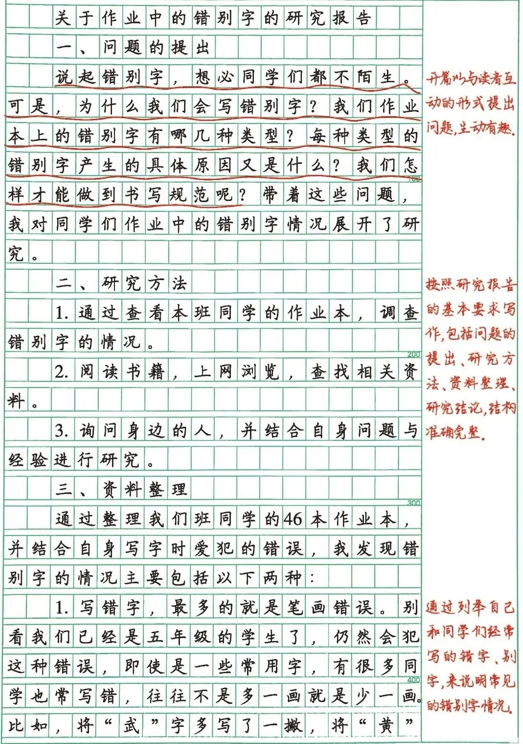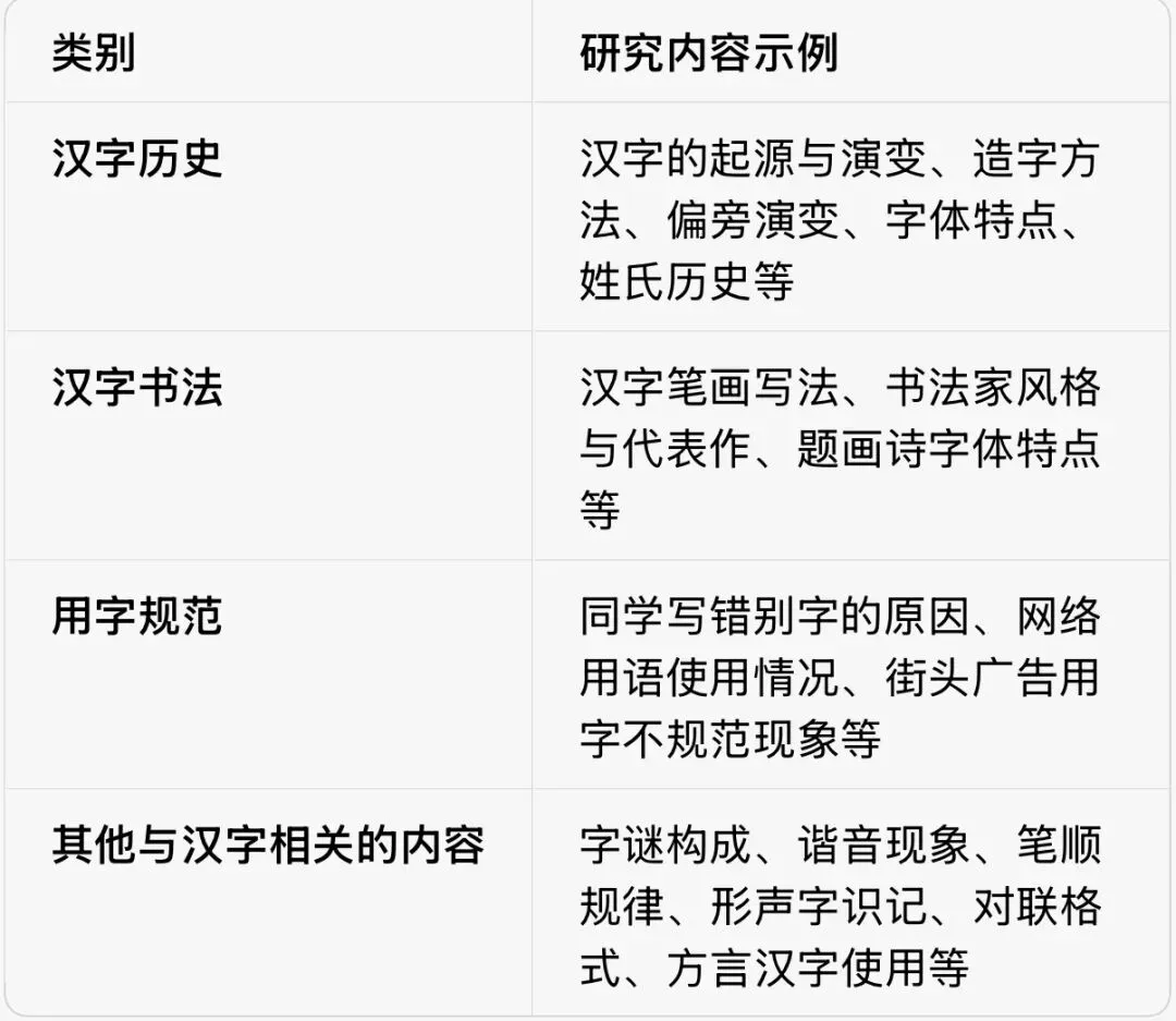• ✅ 范围较小:《关于五(1)班学生不规范用字情况的研究报告》