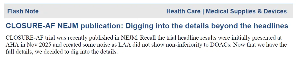 看多了专业的文献解读,今天我们也借此机会分享这个有趣的视角,从投资分析报告(Flash Note)的角度看看资本如何解读循证。