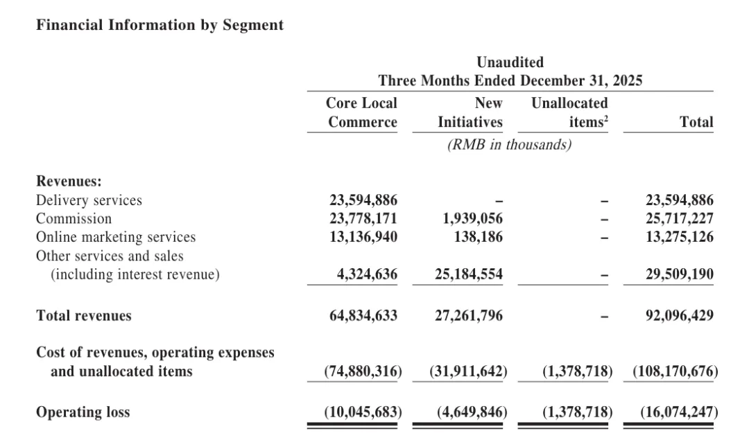 Q4营收920亿元,同比增长4.1%,Q4整体经营亏损达160.74亿元,净亏损150.80亿元,美团核心本地商业收入达到648亿元,同比小幅下滑1.1%,这也是该板块收入首次出现同比微降。那本季度的亏损依旧在我的意料之中,其实就是因为外卖大战:加大了营销和推广力度,补贴投入大幅增加,直接把利润给打没了。