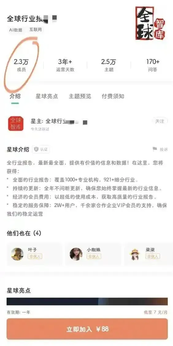 今天说个项目,很多人可能不知道——卖行业报告,有人靠这个在知识星球上三年赚了200多万。