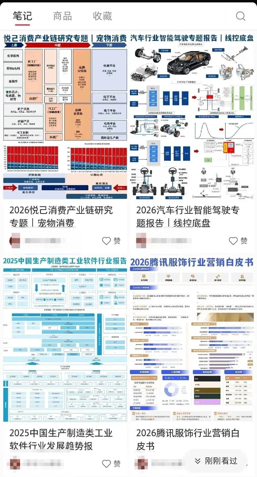 小红书——发报告截图,封面写"2026新能源行业报告合集",目标用户一看就点进来