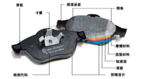 组成:一般由钢板、粘接隔热层和摩擦块构成。钢板要经过涂装来防锈;隔热层是由不传热的材料组成,目的是隔热;摩擦块由摩擦材料、粘合剂组成;刹车时被挤压在刹车盘或刹车鼓上产生摩擦,从而达到车辆减速刹车的作用。