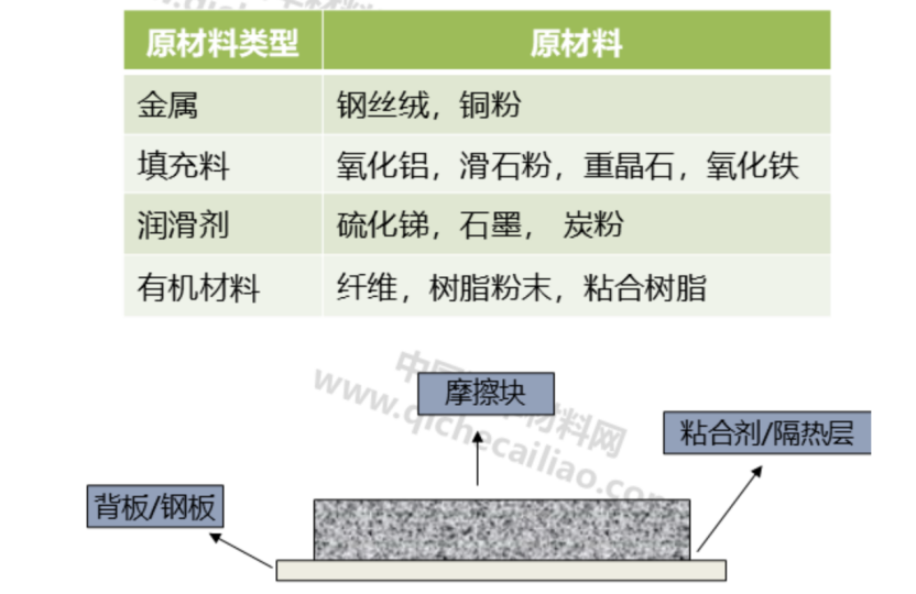 无石棉摩擦材料逐步取代传统材料,成为汽车刹车片的主要摩擦材料,大致分为五种:
