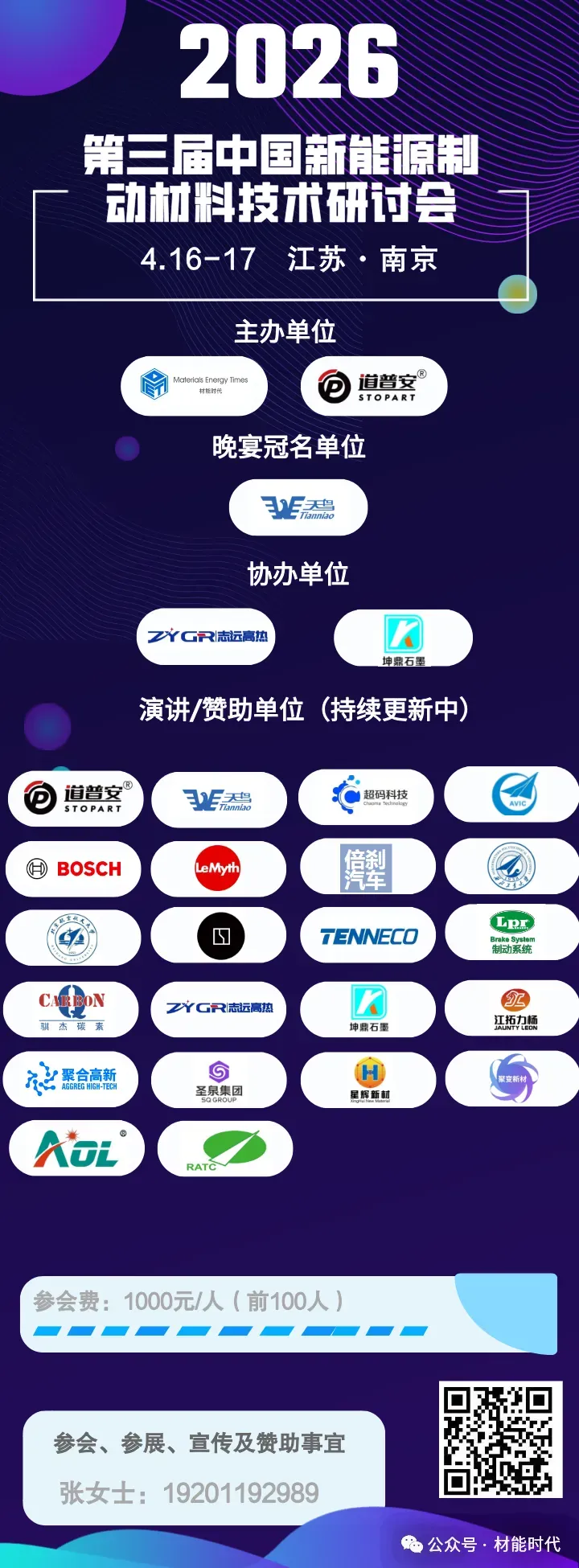 2026第三届中国新能源制动材料研讨会将于2026年4月16日-17日在江苏南京召开。本届会议将紧扣市场增长热点、技术创新前沿与政策标准新要求,旨在深入探讨制动材料如何更好地与智能化、轻量化趋势融合,并前瞻性地布局下一代技术。