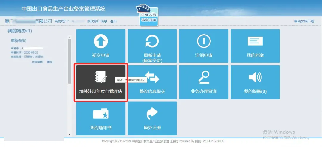 进入境外注册年度自我评估模块