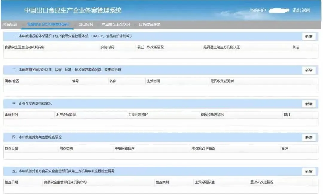 填写食品安全卫生控制体系运行信息