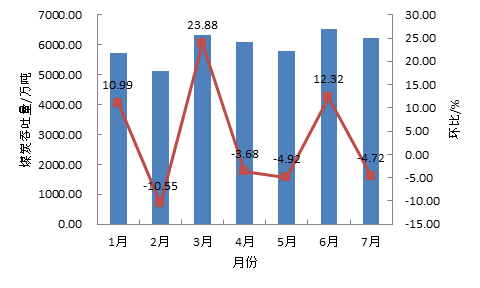 7月原煤生产同比略增,进口增速仍处高位。根据国家统计局的数据,7月我国生产原煤3.8亿吨,同比增长0.1%;进口煤炭3926万吨,同比增长66.9%。1—7月,累计生产原煤26.7亿吨,同比增长3.6%;累计进口煤炭2.6亿吨,同比增长88.6%。7月,电力生产有所加快,发电量8462亿千瓦时,同比增长3.6%;1—7月,累计发电量50130亿千瓦时,同比增长3.8%,其中火电同比增长7.2%。