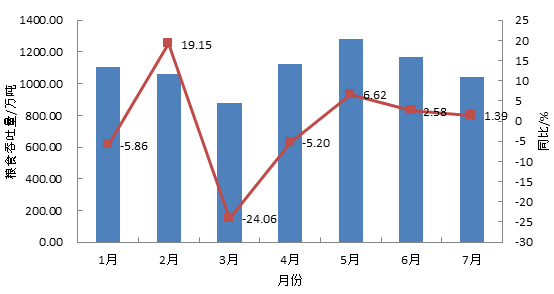 7月粮食进口保持较快增长。据海关总署的统计数据,2023年7月我国粮食进口总量1357万吨,同比增长10.4%,其中:进口玉米168万吨,同比增长9.2%;进口小麦71万吨,同比下降9.1%;进口大麦72万吨,同比增长1700%;进口高粱45万吨,同比下降66.2%;进口大豆973万吨,同比增长23.48%;进口稻米10万吨,同比减少79.8%。1—7月,我国粮食进口量9696万吨,同比增长5.3%,其中:进口玉米1371万吨,同比下降9.4%;进口小麦872万吨,同比增长52.4%;进口稻米191万吨,同比下降53.3%;进口大麦581万吨,同比增长53%;进口高粱267万吨,同比下降63.7%;进口大豆6230.3万吨,同比增长15%。7月,国际大豆市场需求依然旺盛,大豆价格走高,虽然阿根廷遭遇旱灾导致其大豆产量骤降,美国大豆产量也同比下跌,但巴西大豆丰产,巴西大豆价格低于上年,是我国进口大豆增加的主要原因。