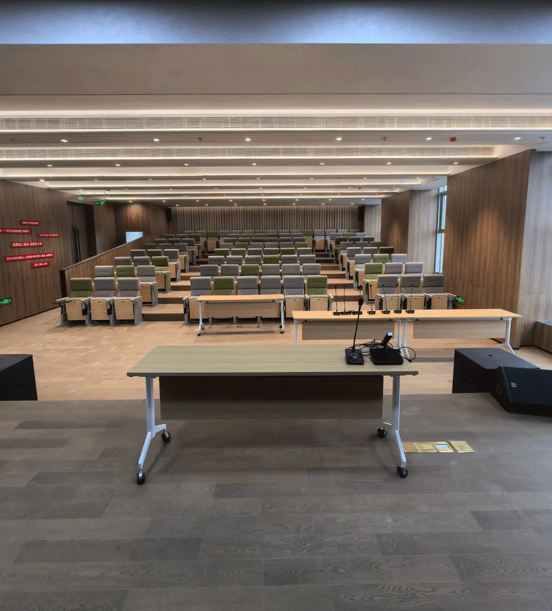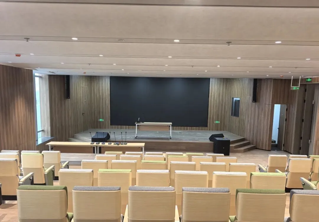 报告厅核心配置LF系列线阵扬声器组成左右主扩阵列,科学排布于厅堂两侧,能实现全场无死角、均匀一致的声压覆盖,彻底解决“前排过响、后排模糊”的痛点;