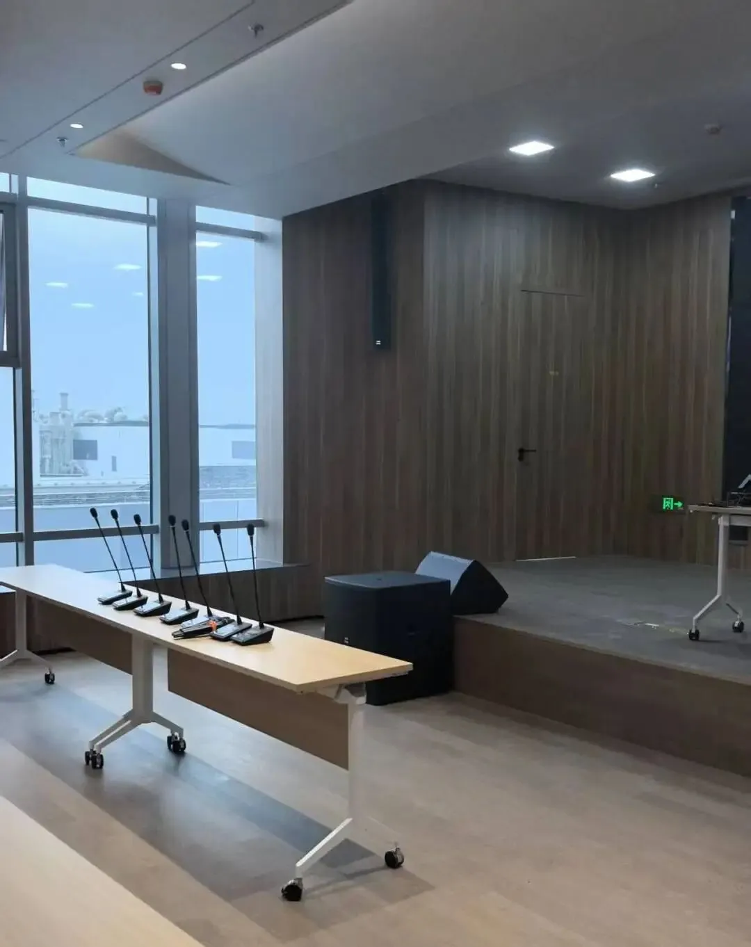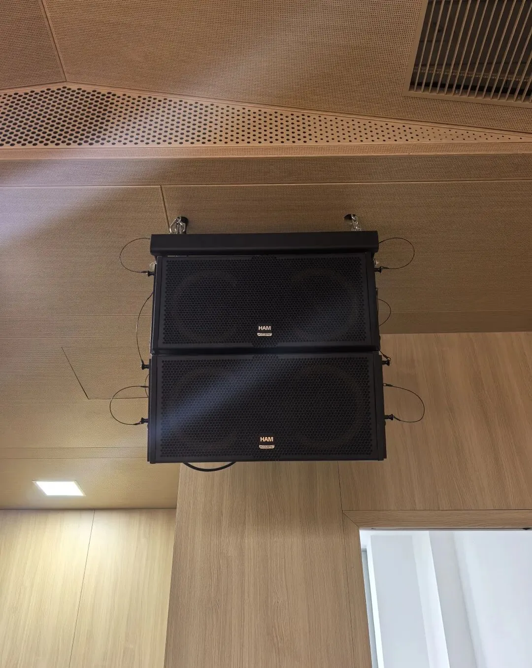 汇报厅核心配置HL系列音柱扬声器作为核心发声单元,科学适配汇报厅偏小的空间布局,结合场地层高与墙面声学特性精准安装;