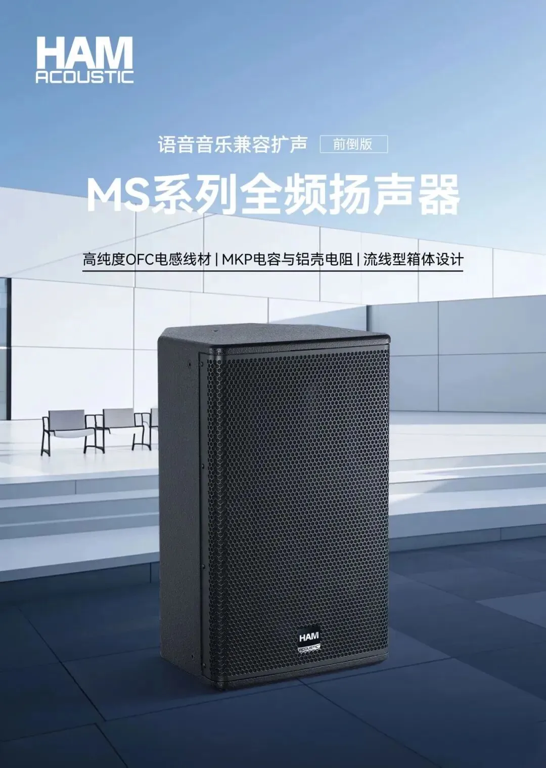 MS12M(舞台专业返听)主要负责舞台区域的返听扩声,为舞台上的发言者、演示人员提供清晰的自身声音反馈;