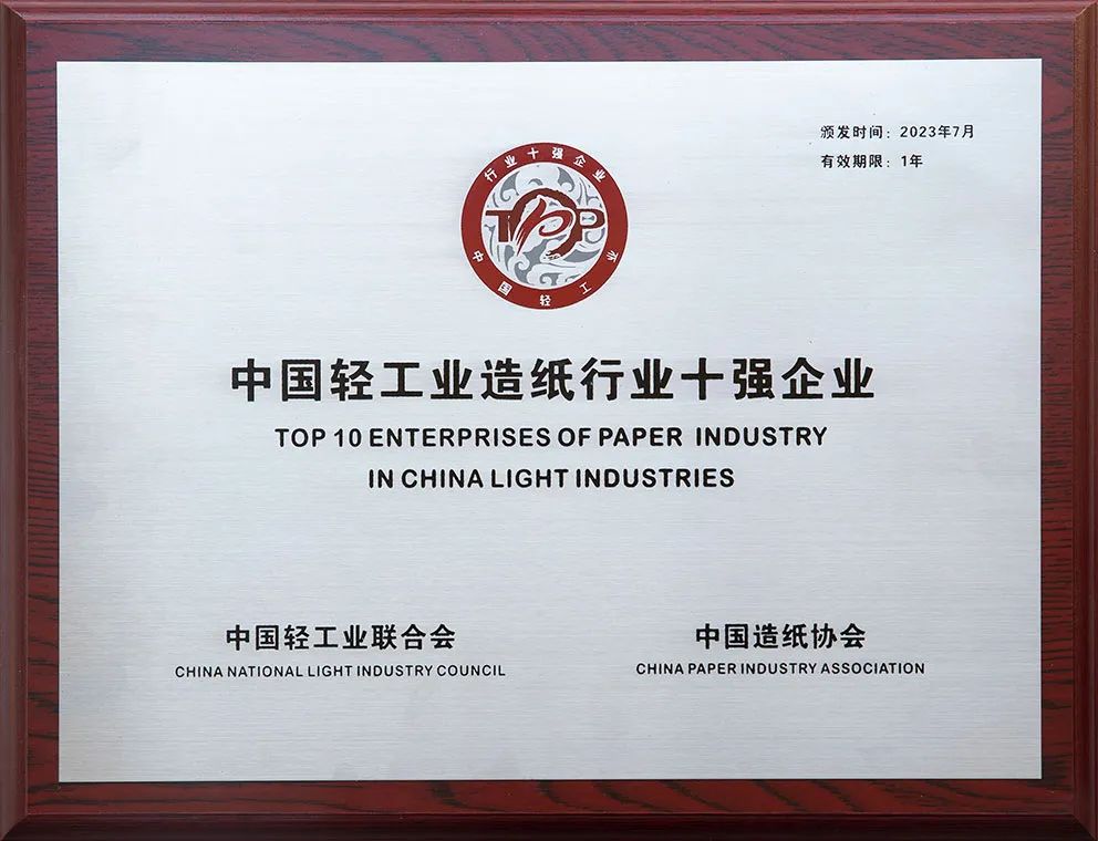 日前,中国造纸协会发布《关于表彰“2022年度中国轻工业造纸行业十强企业”的决定》,
