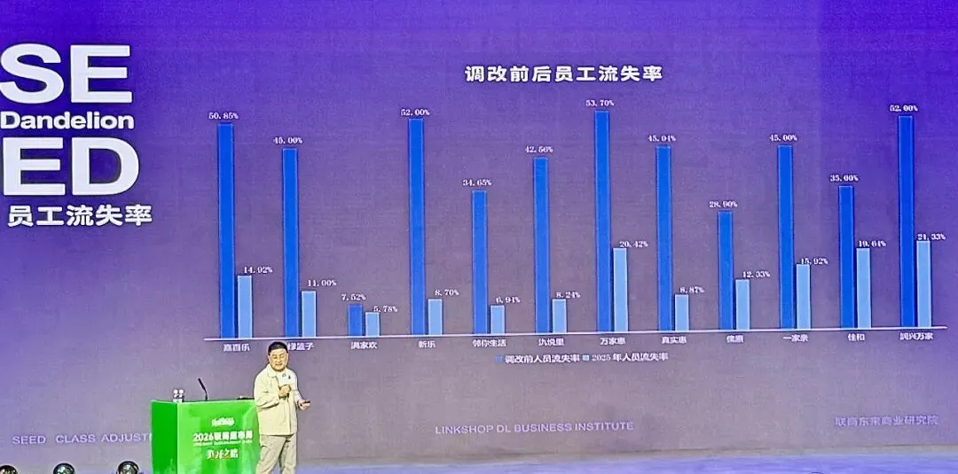 在刚刚结束的2026联商超市周上,联商东来商业研究院执行院长程相民发布了一份重磅报告——“种子班四年调改报告”。这份报告不仅全景式展现了12家种子班企业学习胖东来模式、践行美好商业理念的四年历程,更在细节处透露出一个值得关注的趋势:零售企业的用工模式,正在发生深刻变化。
