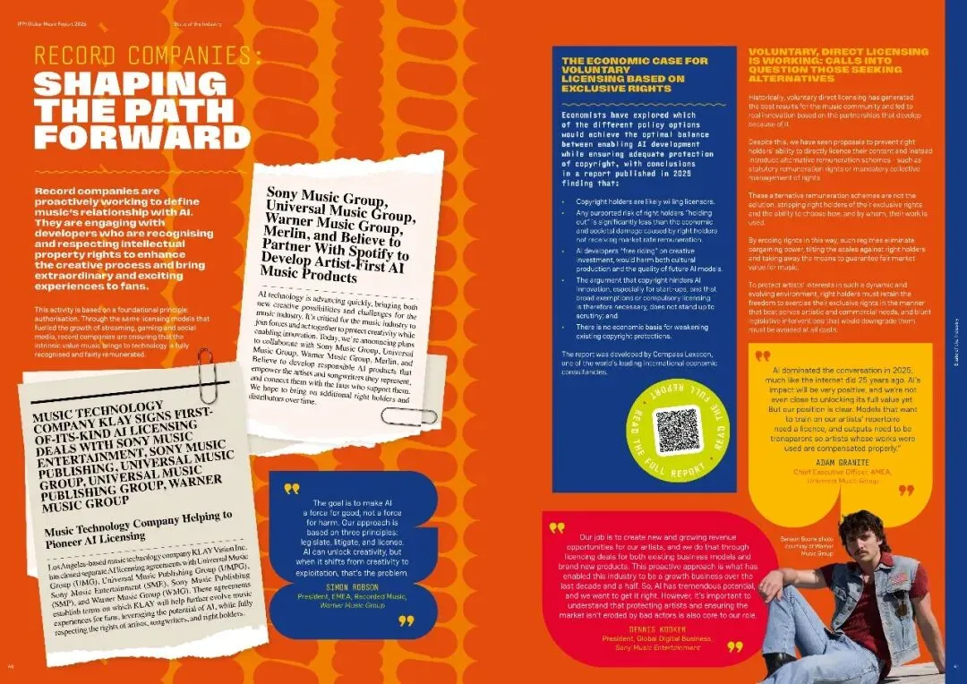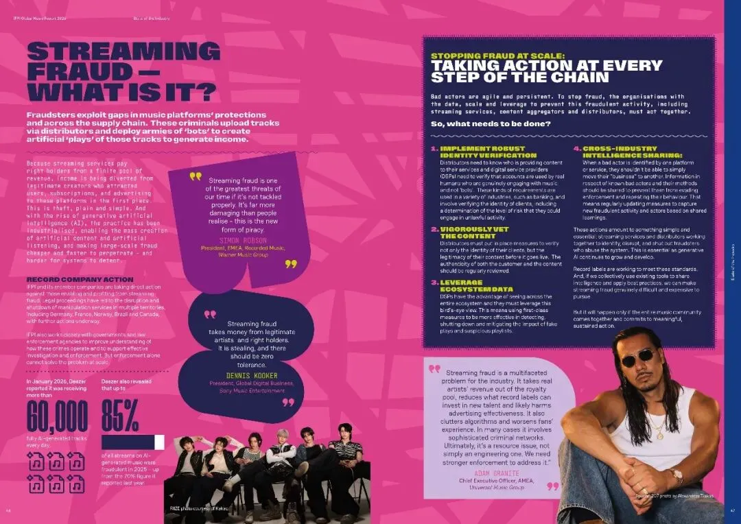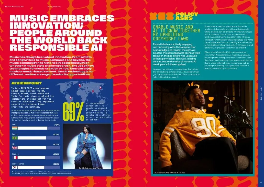 同时,AI技术正被积极引入音乐创作与分发,但需确保版权方授权,推动音乐与AI共同发展。面对日益严重的流媒体欺诈问题,报告呼吁全行业共同行动,利用数据分析和跨行业合作打击欺诈行为。此外,报告还展示了全球及区域市场动态、成功案例和未来政策方向,旨在促进音乐产业的健康、可持续发展。