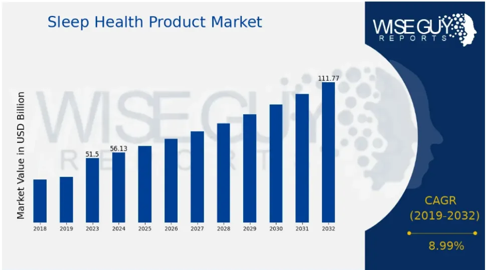 Wish guy报告数据显示,2023年睡眠健康产品市场规模约为51.5(十亿美元),2024年的约为56.13(十亿美元),预计2032年增长至111.8(十亿美元),复合年增长率(增长率)预计约为8.99%。