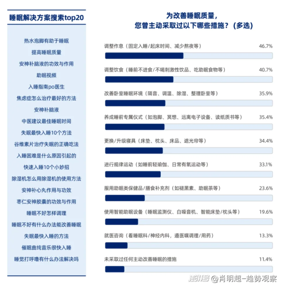 ③ 33%的人改善寝具和辅助措施,包括助眠设备、检测设备等。