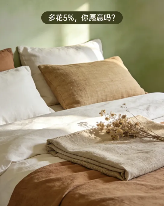 回到李睿的故事。他联合环保机构种下的那棵花棒,已长到60厘米。消费者林晓把“树苗成长照”发到朋友圈,配文:“第一次觉得‘用完就扔’也可以很温柔。”半小时,收获47个赞,8条私信问链接。这或许就是可持续家纺的未来方向——把“负罪感”变成“参与感”,让环保不再是成本,而是钥匙。对于愿意为环保多付多少钱这个问题,答案或许正在变化:当一套床品不仅让你睡得舒服,还让你睡得安心——安心于自己的消费没有给地球增加负担,安心于那棵远方的树正在生长——那么那5%的溢价,就不再是“多花的钱”,而是“买得值”的一部分。毕竟,我们对家的期待,从来不只是舒适。还有一份温柔——对自己,也对这个世界。