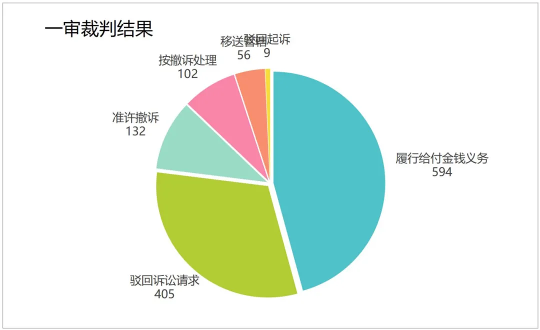相较于上年比较突出的是,有9件案件被驳回起诉,占比虽然不大,但是对于个别企业主张债权来说,显然带来了非常大的障碍,说明完全败诉的风险依然存在。