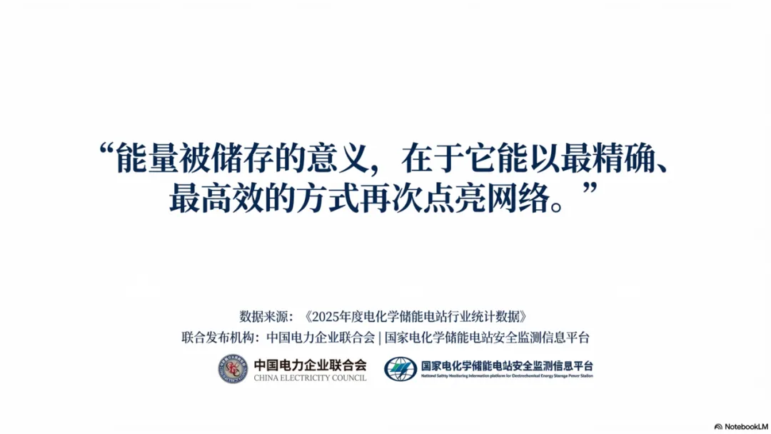 2026年3月中国电力企业联合会与国家电化学储能电站安全监测信息平台发布2025年度中国电化学储能行业的发展状况。报告指出,该行业呈现爆发式增长,累计装机容量较“十三五”末增长超40倍,且技术应用以磷酸铁锂电池及百兆瓦级大型电站为主。报告深入分析了储能电站在电源侧、电网侧及用户侧的运行效率、调度利用小时数及区域分布差异。此外,报告还关注了电站的可靠性与安全性,指出非计划停运多由设备质量引发。最后强调,储能行业的未来竞争核心将聚焦于电站自身的能效表现与性能优化。
