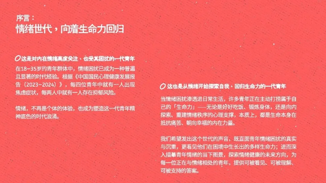 这份白皮书深度地剖析出,情绪困扰已然成了这一代青年具有普遍性的“时代经验”,其中饱含深厚意味。报告里的数据表明,焦虑跟抑郁于青年群体中极为普遍,这可不是个别人的脆弱表现,而是一种广泛存在着的集体现象,需深加考量。报告明确指出,青年们正处于一种“长时间独处”和“高度竞争”同时存在的状况里。从校园到职场的过渡阶段、对于未来的不确定性、以及源自家庭、社会和数字媒介的多重压力,共同塑造了他们情绪的基本色彩。焦虑与孤独,已然变成这一代青年无法避开的时代背景声音,于他们的成长历程中持续回响。