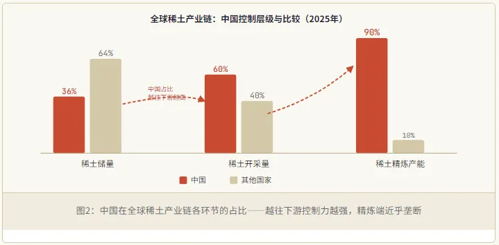 精炼产能 | 约90%+ | ⚡ 近乎垄断,出口管制核心 |