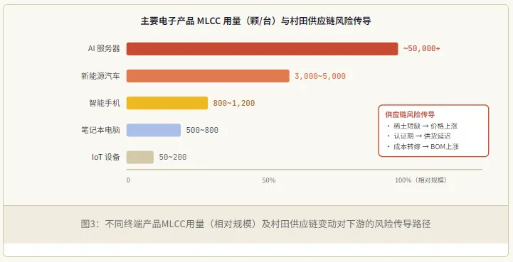 ●稀土溢价常态化:非中国来源的稀土将长期维持较高价格,这部分成本将通过MLCC价格逐步向下游转嫁,终端产品BOM成本有望小幅上升。