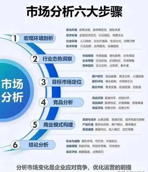 这个阶段核心适用定量为主、辅以少量定性的混合分析方法,核心要求是 “快”,不需要过度深入的洞察,但需要全面、准确的市场基础数据,帮企业做出 “要不要进场” 的决策。