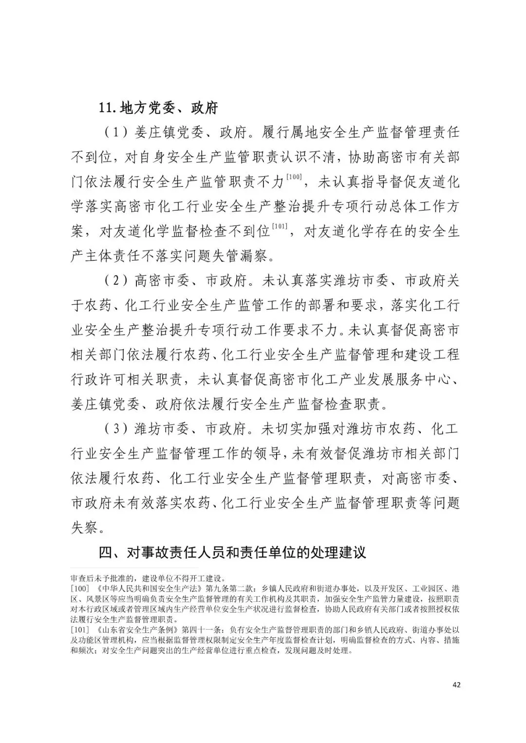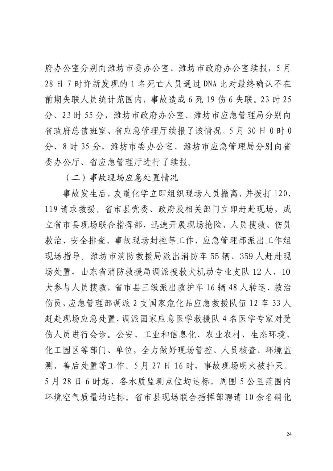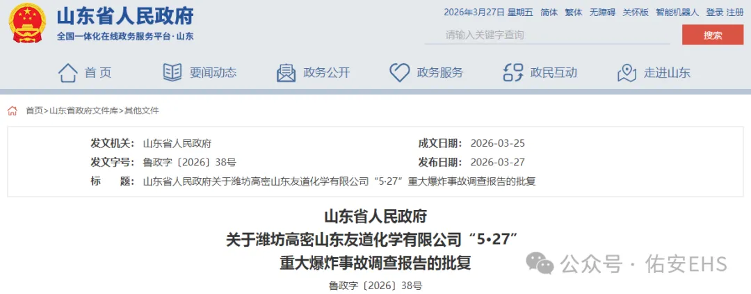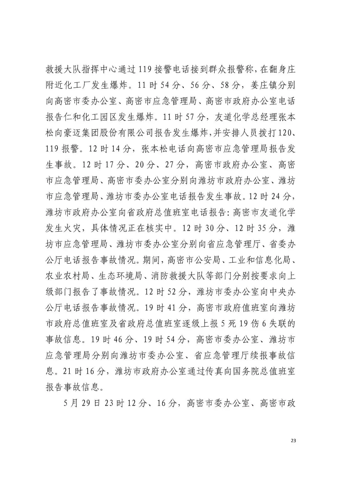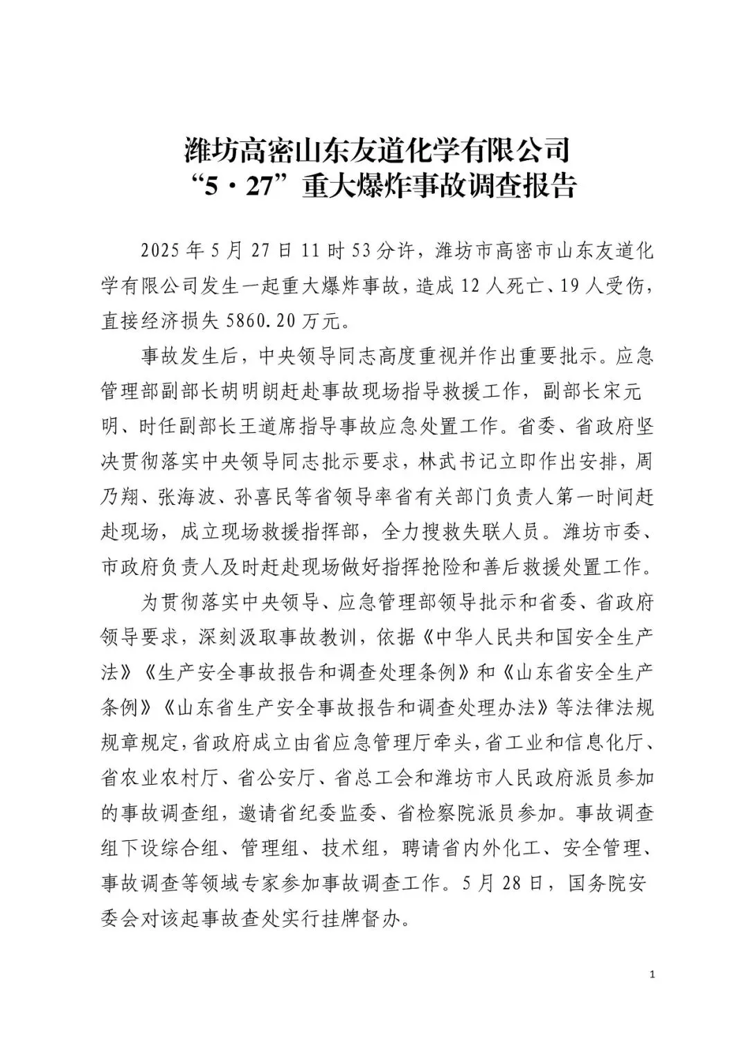 省政府潍坊高密山东友道化学有限公司“5·27”重大爆炸事故调查组(以下简称事故调查组)提交的《潍坊高密山东友道化学有限公司“5·27”重大爆炸事故调查报告》(以下简称《调查报告》),已经省政府同意。现批复如下。
