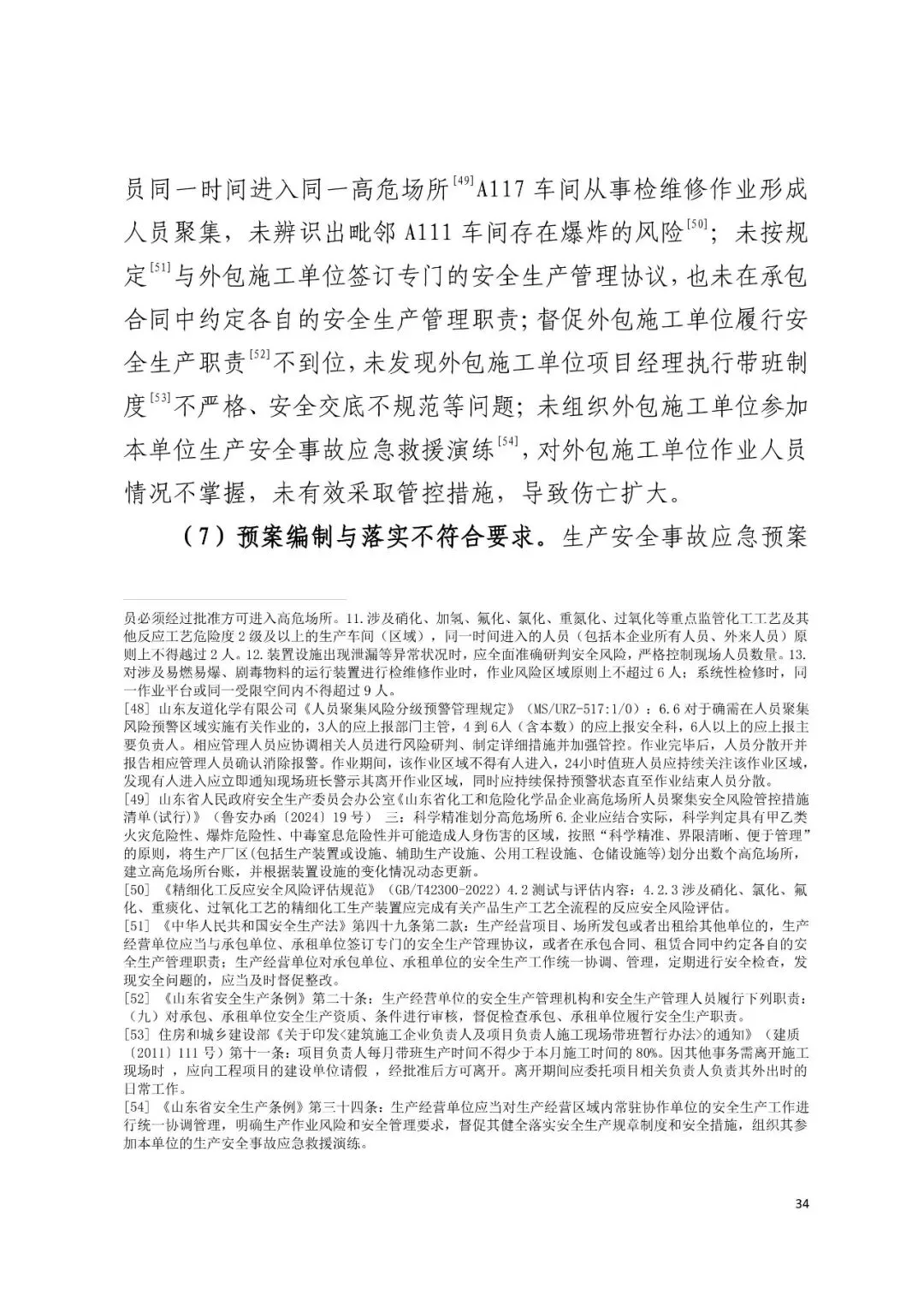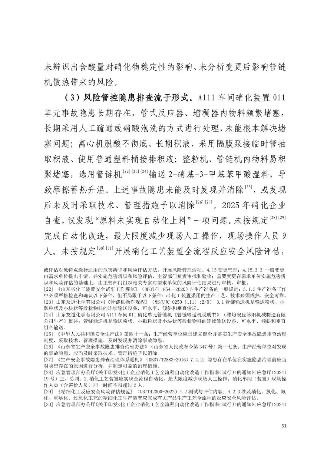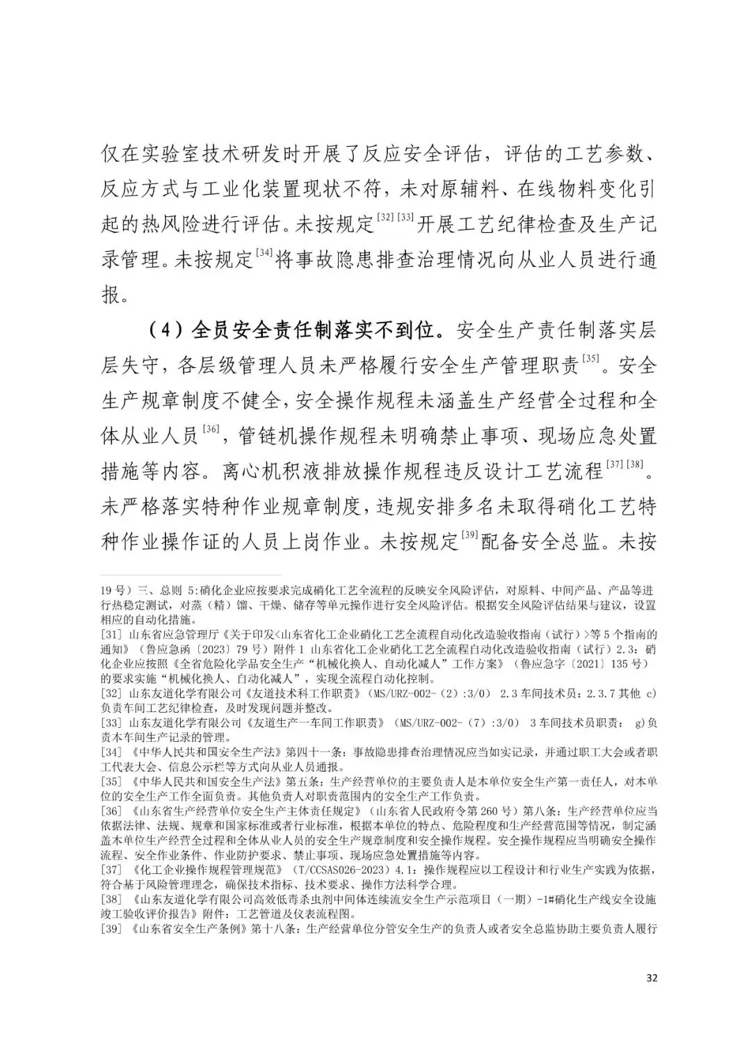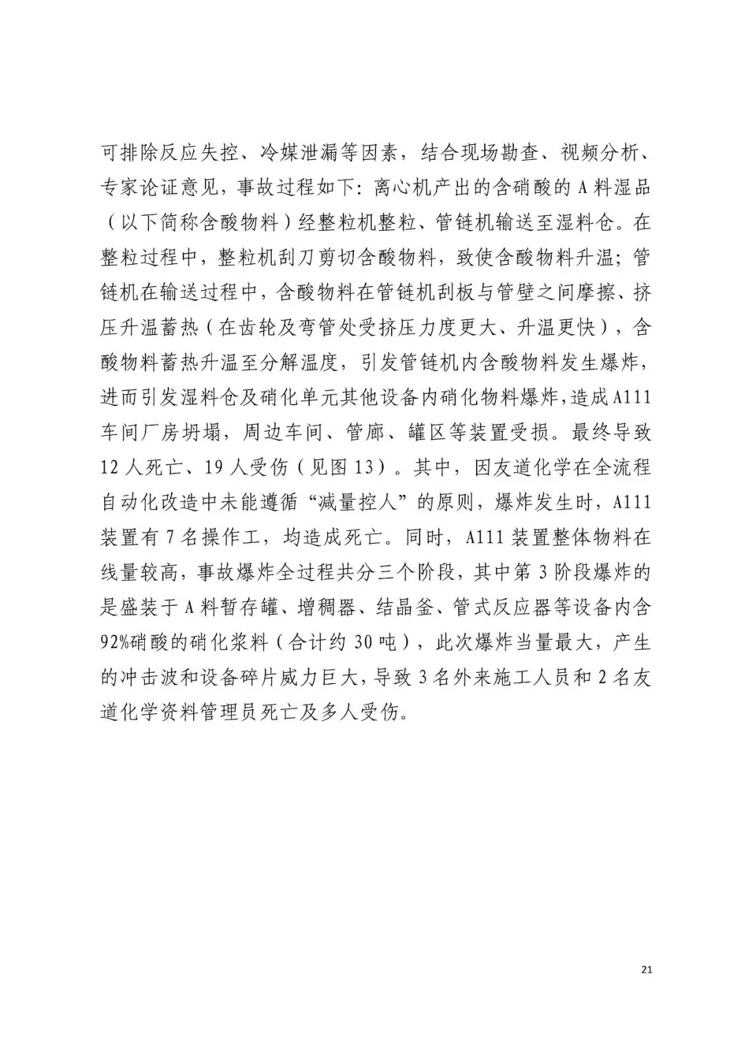 二、同意事故调查组对事故的原因分析和责任认定。潍坊高密山东友道化学有限公司“5·27”重大爆炸事故是一起因工艺技术有缺陷、擅自使用不合格原料、物料输送设备选型不当、风险管控措施缺失、隐患排查治理流于形式、违规组织项目建设生产,属地党委、政府和有关部门履职不到位,造成的重大生产安全责任事故。