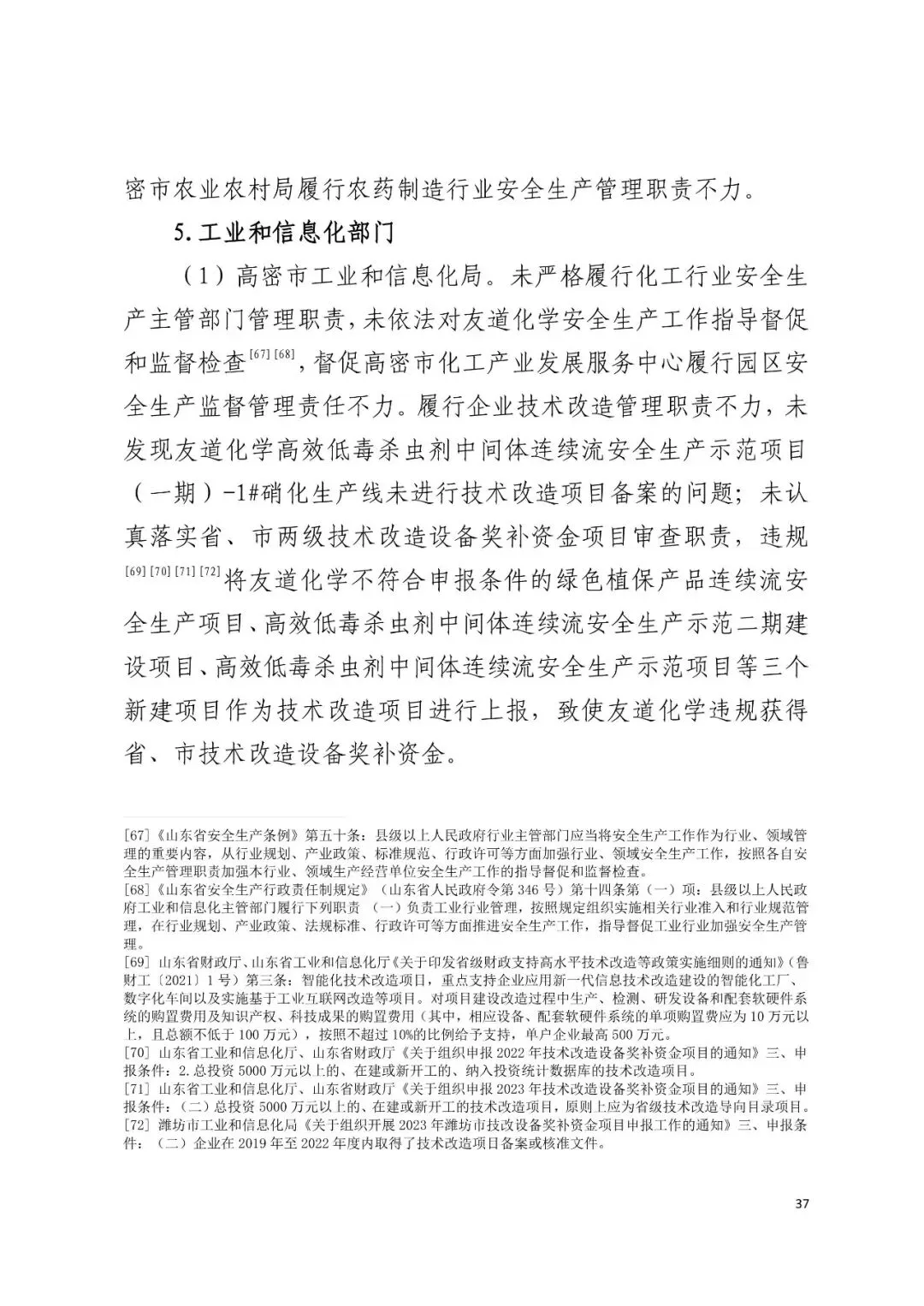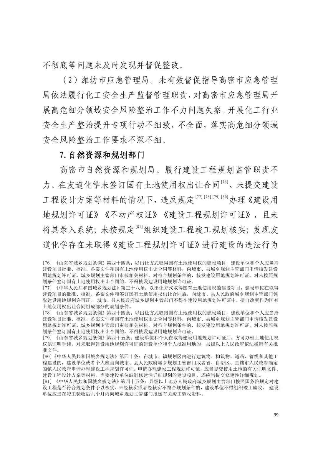 责成高密市姜庄镇党委、政府,高密市化工产业发展服务中心、高密市农业农村局、高密市工业和信息化局、高密市应急管理局、高密市住房和城乡建设局、高密市自然资源和规划局、高密市行政审批服务局、潍坊市生态环境局高密分局,向高密市委、市政府作出深刻书面检查。责成高密市委、市政府,潍坊市农业农村局、潍坊市工业和信息化局、潍坊市应急管理局向潍坊市委、市政府作出深刻书面检查。责成潍坊市委、市政府向省委、省政府作出深刻书面检查。