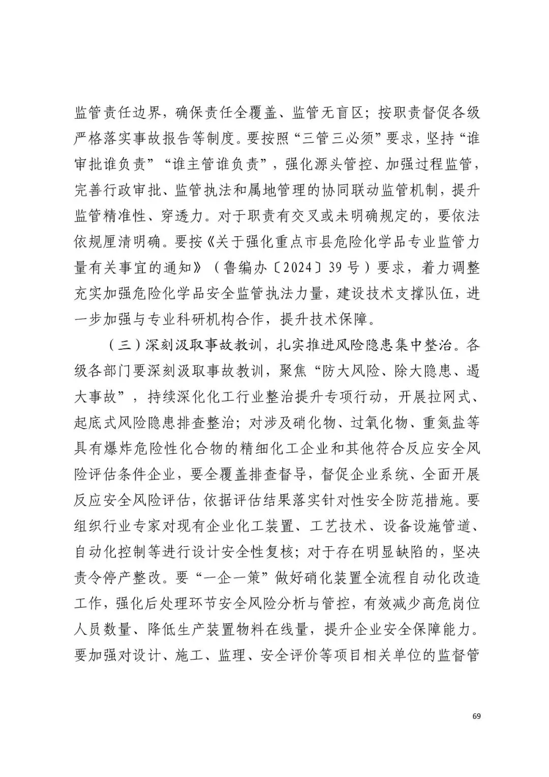 四、同意事故调查组提出的事故防范和整改措施。潍坊市政府及有关部门要认真吸取事故教训,严格落实《调查报告》中提出的各项事故防范和整改措施,举一反三,切实加强安全生产监管,强化企业安全生产主体责任,强化教育培训,有效预防各类事故发生,确保安全生产形势稳定。