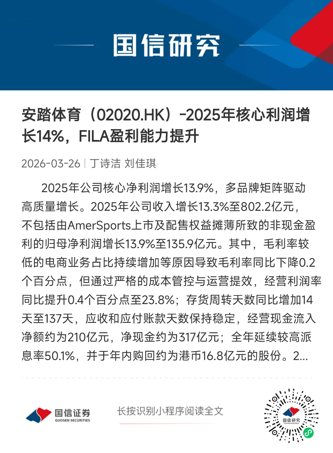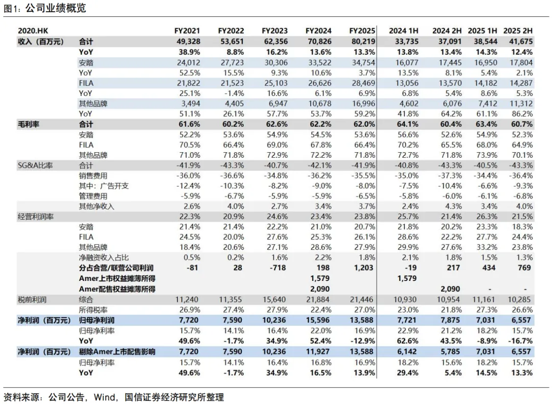 报告名称:《国信证券-海外公司财报点评:安踏体育(02020.HK)-2025年核心利润增长14%,FILA盈利能力提升