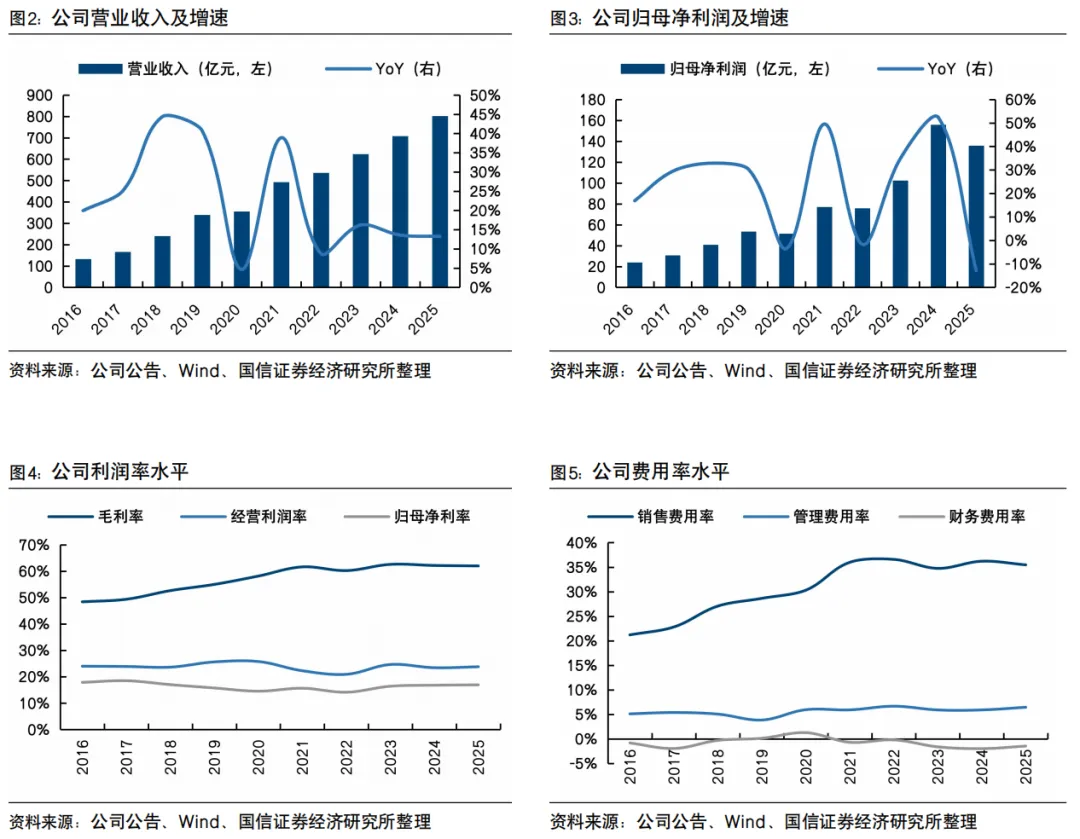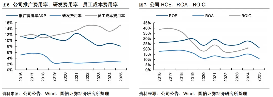 毛利率为53.6%,较2024年的54.5%下降0.9个百分点,主因加大专业产品的成本投入及电子商贸业务占比持续上升所致;经营利润率为20.7%,较2024年的21.0%下降0.3个百分点,主因毛利率下降所致。