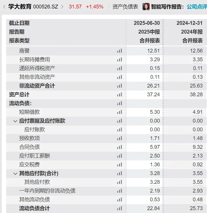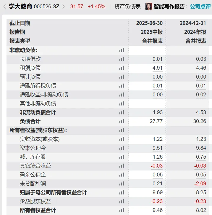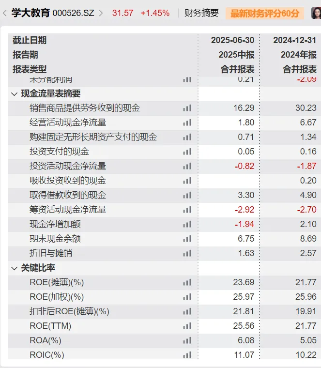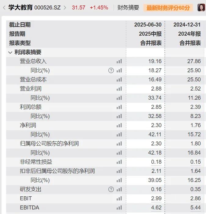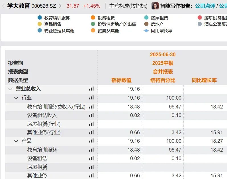 2025年中报里教育培训服务收入占比96.47%,扣非后净利润2亿多。