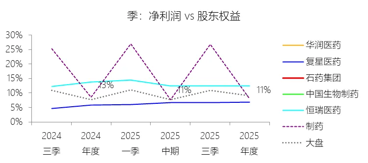 净资产收益率:2025年末,石药集团的股东权益为345.50亿元,对比年初增长2.02%,净利润与股东权益的比例为11.22%(TTM净资产收益率),同比下降1.59个百分点;2015-2024年(十年),净利润与股东权益的平均比例为18.60%,比制药行业的均值高8.65个百分点,长期呈下降趋势。