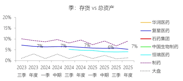存货:2025年末,石药集团的存货为30.91亿元,对比年初减少1.25%,与总资产的比例为6.62%,同比下降0.43个百分点;2015-2024年(十年),此项与总资产的平均比例为8.44%,比制药行业的均值低0.6个百分点,长期呈下降趋势。