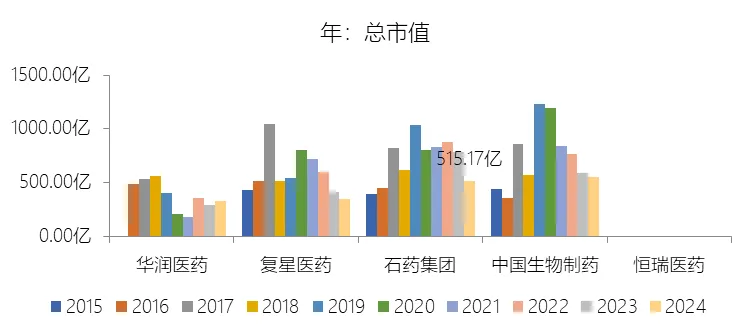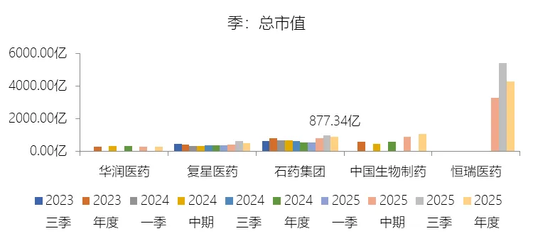 市值增长率:2025年末,石药集团的总市值为877.34亿元,对比年初增长70.3%,增速同比(去年同期)上升104.52个百分点;2015-2024年(九年)增长31.35%,年复合增长3.08%,比制药行业的复合增速低2.49个百分点,长期呈下降趋势。增速短期上升主要由于石药集团在2025年实现的国际化BD(业务发展)授权领域取得历史性突破,尤其是与阿斯利康及Madrigal等国际巨头达成的重磅授权合作(如2025年上半年授权费收入即达10.75亿元),其多肽药物AI发现平台、ADC及GLP-1等核心创新管线价值在全球市场得到充分验证,极大提振了资本市场对公司向全球领先创研药企转型的信心,促使公司估值水平从2024年的历史低位显著回升。增速长期下降主要由于中国医药行业监管环境与支付体系的深刻变革,公司传统优势品种如维生素C、抗生素等原料药以及普药制剂持续面临产能过剩、环保压力及多轮国家集采导致的价格大幅侵蚀,且恩必普、津优力、多美素等核心创新药在经历高速放量后均步入国家医保谈判降价及集采接续的成熟期,收入增速放缓导致市值的长期增长动能随业绩增长中枢的回落而呈现自然下降趋势。增速低于制药行业的复合增速主要由于本次对比的制药行业名单中涵盖了大量处于估值爆发期的生物科技(B类)企业及专业化创新药标的,而石药集团作为营收规模巨大的综合性头部企业,在从原料药及仿制药向全面创新转型的过程中,受限于巨大的历史基数及资本市场对大型成熟药企更为审慎的市盈率估值逻辑,相比行业内具有极高估值弹性的纯研发型标的,其在市值扩张的速度上表现得相对稳健。