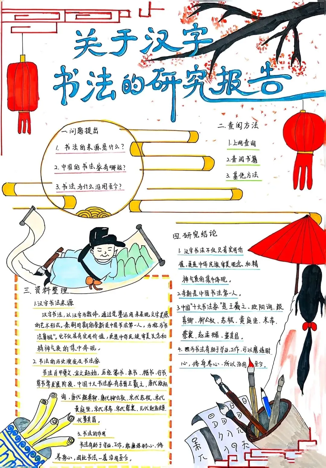 请你尝试写一份简单的研究报告,可以围绕汉字历史、汉字书法或其他你感兴趣的与汉字有关的内容,也可以调查同学的作业本、街头招牌、书籍报刊等,围绕生活中用字不规范的情况,开展简单的研究。