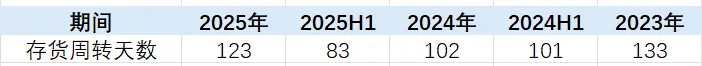 问题三:存货周转天数大幅提高,从上半年的83天到2025年的123天