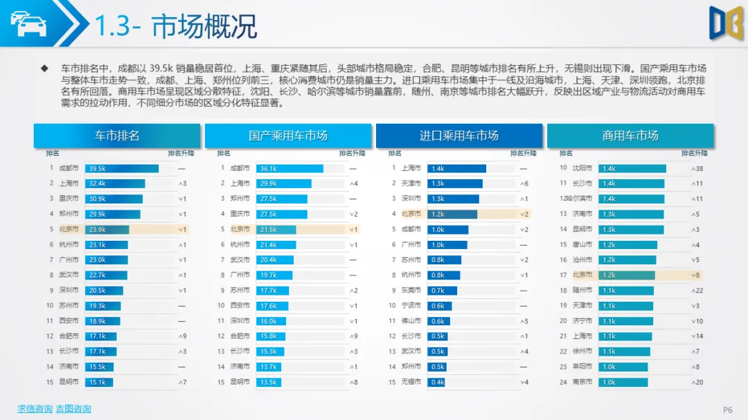 整体来看,2026年初北京市汽车市场受季节性因素、生产物流活动放缓等影响,各细分市场普遍承压,新能源增长动能暂时减弱,消费升级与市场分化成为核心趋势。后续需重点关注复工复产节奏、政策刺激力度及消费复苏进度,以判断市场能否逐步修复回升。