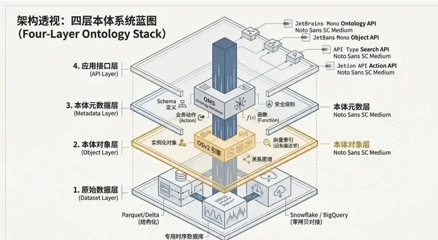 Palantir架构通过四层解耦,确立了语义一致性与权限控制的工业标准:
