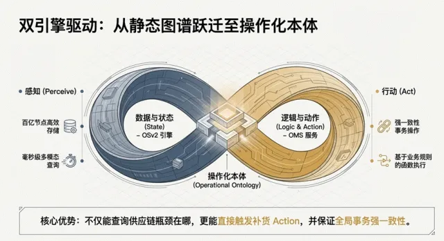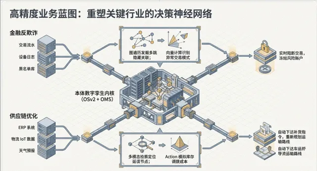 → 跃迁到 “操作化本体”(知识即代码、知识可直接驱动执行)。它特别适合复杂业务场景,例如:供应链管理(查询瓶颈 + 自动补货),智能制造,金融风控